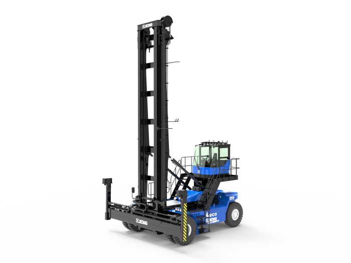 項目 (Item) 參數數值 (Data) 產品型號 XCH907E 額定起重量 9,000 kg (9噸) 堆碼層數 (8'6" / 9'6") 7 層 / 6 層 最大起升高度 18,780 mm 最大起升速度 (空載/滿載) 600 / 500 mm/s 最大行駛速度 (空載/滿載) 26 / 22 km/h 電池類型 磷酸鐵鋰 (LFP) 電池容量 標配 350.1 kWh (可選配) 充電模式 雙槍直流快充 (約1-1.5小時充滿) 整機重量 約 42,000 kg 外形尺寸 (長x寬x高) 6900 x 6053 x 10860 mm
